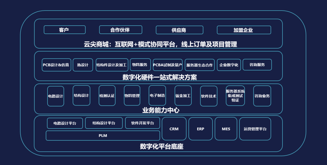 Current positive value “ Fourteen five ” In the new development stage under the plan, digital transformation has become the key to activate the new momentum of various industries. In order to promote the digital transformation and upgrading and the development of the digital economy, in addition to the support of advanced upper-level algorithms, it is more necessary to support the underlying hardware with high reliability. In order to comply with the new development trend and help our customers better grasp the market opportunities, Yunjian Information has created a one-stop hardware innovation service platform. Up to now, Yunjian Information has successfully built a complete hardware service platform, and has become one of the few companies in the industry with truly one-stop capabilities. Yunjian's technical service team has served customers in automotive electronics, chip engineering, smart medical and other fields.
