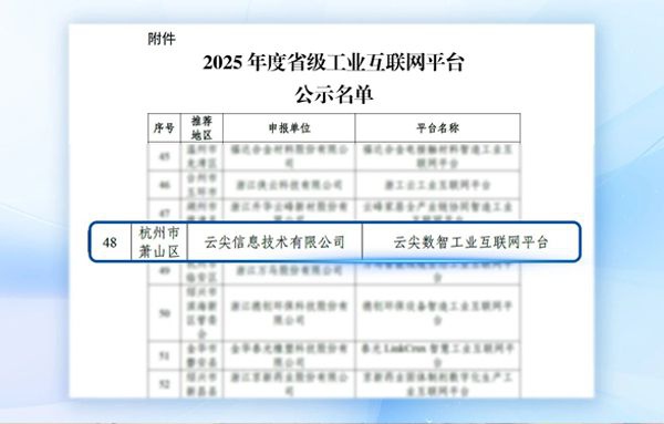 數(shù)智賦能 智造未來丨云尖信息獲2025年度省級工業(yè)互聯(lián)網(wǎng)平臺認定
