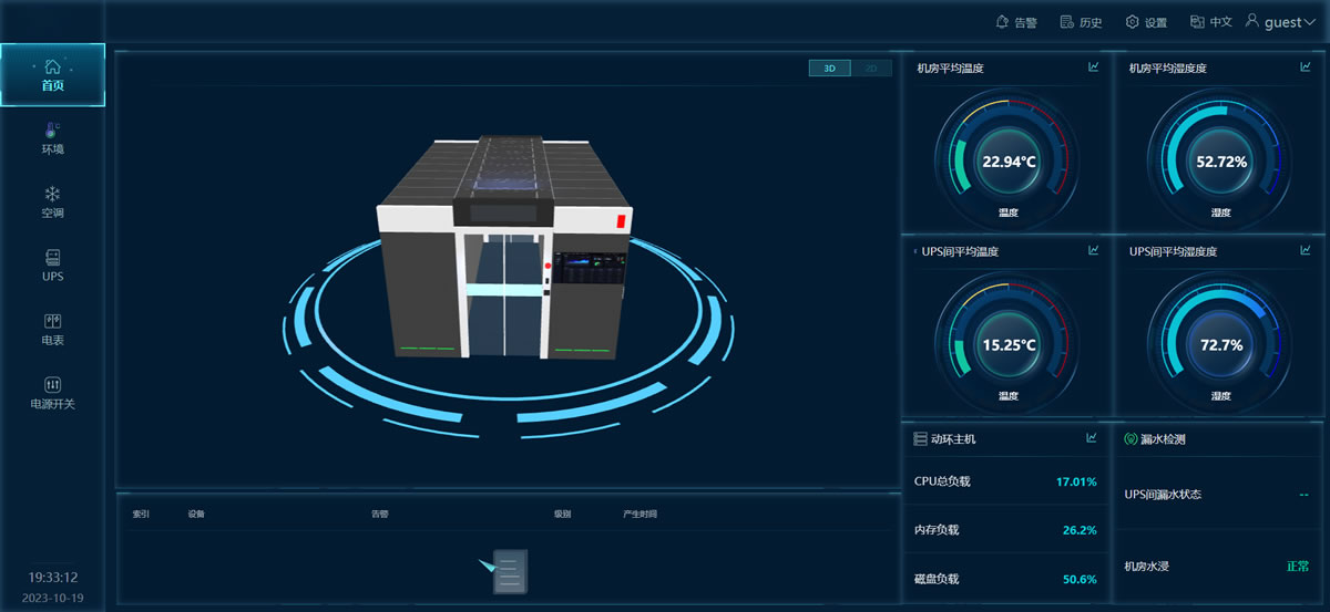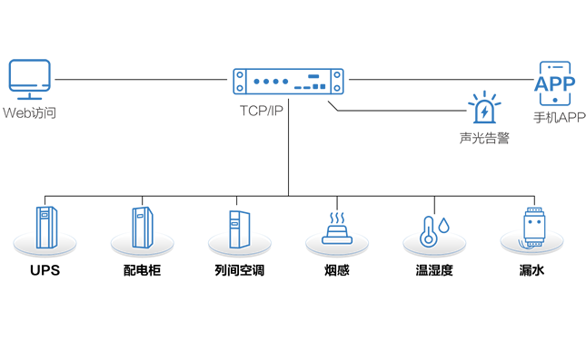 微動環系統主要由智慧監控主機、傳感器/控制器、本地控制面板和外部聯動設備(接口)等組件組成,并與運行管理系統 軟件共同協作,實現環境監控(煙感、溫濕度、水浸、視頻、門禁)、動力監控(配電柜、UPS、電池、空調),管理監控(資產管理、容量管理、能效管理、3D可視化)等功能。
